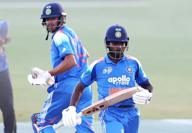 Dubai: As part of the Asia Cup Under-19 Cup tournament, India entered the final with a great victory in Semi-1 against Sri Lanka. Young India chased down the target of 139 runs set by Sri Lanka by losing 2 wickets in 18 overs. Openers Ayush (7) and Vaibhav Suryavanshi (9) failed.. Vihan (61*) and Aaron (54*) who came to the crease later scored half centuries and won the team. In the second semi, Pakistan won against Bangladesh and reached the final. With this, the final between India and Pakistan will be held on December 21 in Dubai.