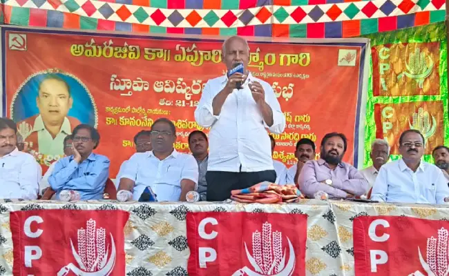 ఇల్లందు గ్రామీణం: కమ్యూనిస్టులపై ఉన్న అభిమానాన్ని ఓట్ల రూపంలో మార్చుకోలేకపోతున్నామని సీపీఐ రాష్ట్ర కార్యదర్శి, కొత్తగూడెం ఎమ్మెల్యే కూనంనేని సాంబశివరావు అన్నారు. ఆదివారం ఇల్లందులో ఏర్పాటు చేసిన రాష్ట్ర రైతు సంఘం ఉపాధ్యక్షుడు ఏపూరి బ్రహ్మం స్తూపం ఆవిష్కరణ కార్యక్రమంలో ఆయన పాల్గొని మాట్లాడారు. ఈ మధ్యకాలంలో పార్టీకి చెందిన పలువురు నాయకులు మృతి చెందడం బాధాకరమన్నారు. కార్మిక వర్గ స్వరూపం మారిపోయిందన్నారు. జిల్లా, రాష్ట్రస్థాయిలో పార్టీని బలోపేతం చేసేలా కృషి చేయాలన్నారు. ఈ కార్యక్రమంలో రాష్ట్ర కార్యవర్గ సభ్యులు, తదితరులు పాల్గొన్నారు.