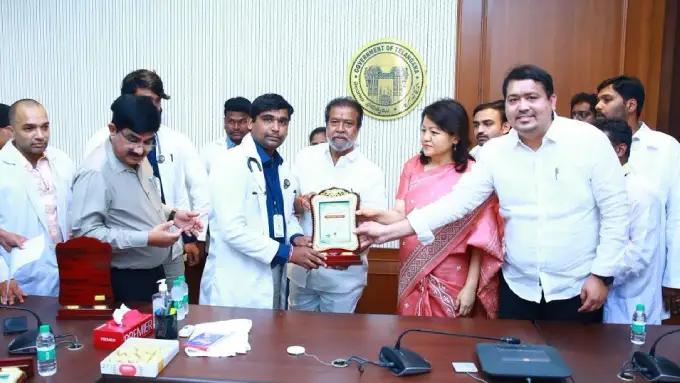 చర్ల: భద్రాద్రి ఏజెన్సీలోని చర్ల ఆసుపత్రిలో వైద్యులు, సిబ్బంది అందిస్తున్న సేవలను రాష్ట్ర ఆరోగ్య శాఖ మంత్రి దామోదర రాజనర్సింహ అభినందించారు. ఏజెన్సీలోని ఆసుపత్రుల్లో అందిస్తున్న సేవలు స్ఫూర్తిదాయకమని మంత్రి కొనియాడారు. భద్రాద్రి జిల్లాలో చర్ల, మణుగూరు భద్రాచలం, ఇల్లందు ,అశ్వారావుపేట ఆసుపత్రుల వైద్యులు, సిబ్బందికి సచివాలయంలో ఆరోగ్య శాఖ కార్యదర్శి క్రిస్టినాతో కలిసి జ్ఞాపికలు అందజేశారు.