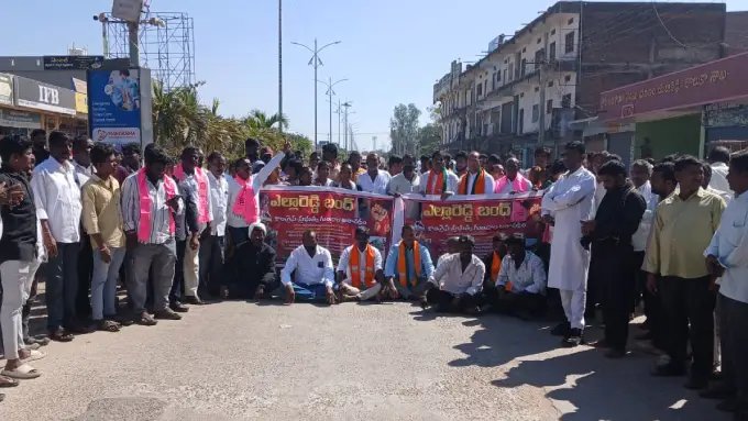 ఎల్లారెడ్డి: సోమార్పేట పంచాయతీ ఎన్నికల్లో ఓడిపోయిన సర్పంచ్ అభ్యర్థి బాలరాజు ఇంటిపై దాడిని నిరసిస్తూ శుక్రవారం అఖిలపక్షం ఆధ్వర్యంలో ఎల్లారెడ్డి పట్టణంలో బంద్కు పిలుపునిచ్చారు. బాలరాజు పోటీలో ఉండటంతోనే తాను ఎన్నికల్లో ఎక్కువ ఖర్చు చేయాల్సి వచ్చిందని పాపయ్య సోదరుడు చిరంజీవిలు.. ఆయన ఇంటిపై ట్రాక్టర్తో దాడి చేసిన విషయం తెలిసిందే. ఈ క్రమంలో తహసిల్దార్ కార్యాలయం ఎదుట ధర్నా నిర్వహించారు. ఈ సందర్భంగా అఖిలపక్షం నాయకులు మాజీ ఎంపీ బీబీ పాటిల్ మాట్లాడారు. దాడికి ప్రేరేపించిన వ్యక్తులను తక్షణమే అరెస్టు చేసి రిమాండ్కు తరలించాలని డిమాండ్ చేశారు. ఇలాంటి సంఘటనలు పునరావృతం కాకుండా ప్రభుత్వం చర్యలు చేపట్టాలని కోరారు.