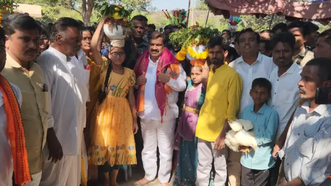 తాండూర్ : ఎల్లమ్మ తల్లి ఆలయం అభివృద్ధికి కృషి చేస్తానని తెలంగాణ ప్రభుత్వ చీఫ్ విప్ డాక్టర్ పట్నం మహేందర్రెడ్డి అన్నారు. శుక్రవారం యాలాల మండలం ముద్దాయి పేట్ గ్రామంలో రేణుక ఎల్లమ్మ తల్లి అమ్మవారి తిరుణాళ్లలో ఆయన పాల్గొన్నారు. అమ్మవారికి ప్రత్యేక పూజలు చేసి బోనాలు సమర్పించారు. మొక్కులు చెల్లించుకున్న అనంతరం ఆయన మాట్లాడారు. ఆయన వెంట టీపీసీసీ ప్రచార కమిటీ సమన్వయకర్త కరణం పురుషోత్తమ రావు, సర్పంచ్ రుద్రమణి రాజప్ప, ఉప సర్పంచ్ శివకుమార్, దేవాలయ కమిటీ ఛైర్మన్ దేవరగారి రాములు ఉన్నారు.