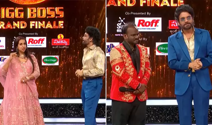 టాప్-5లో అతి తక్కువ ఓట్లు వచ్చిన సంజన మొదటగా ఎలిమినేట్ అయ్యారు. అనంతరం వేదికపైకి వచ్చిన ఇన్ని రోజులు హౌస్లో ఉన్నందుకు సంతోషం వ్యక్తం చేశారు. ‘‘నేను ఫ్లోరా షైనా సీనియర్ బ్యాచ్. హౌస్లో ఉన్న యంగ్ పీపుల్తో పోటీపడగలమా?అనుకున్నాం. కానీ, దేవుడి దయ వల్ల నేను టాప్-5 వరకూ వచ్చా. ప్రాణం పెట్టి ఆడాను. టాప్-4లో ఉన్నవాళ్లలో ఇమ్మాన్యుయేల్ గెలవాలని కోరుకుంటున్నా. ఇప్పటివరకూ జరిగిన 9 సీజన్లలో ఒక్క మహిళా విజేత కూడా లేరు. అందుకే తనూజ ఈ సారి విజేత అయ్యే అవకాశం ఉందని నా అభిప్రాయం’’ అని సంజన అన్నారు. గ్రాండ్ ఫినాలేకు ‘ఛాంపియన్’ చిత్ర బృందం రోషన్, అనస్వర రాజన్, శ్రీకాంత్లు.. ‘అనగనగా ఒక రాజు’ నుంచి హీరో-హీరోయిన్లు నవీన్ పొలిశెట్టి, మీనాక్షి చౌదరిలు విచ్చేసి సందడి చేశారు.