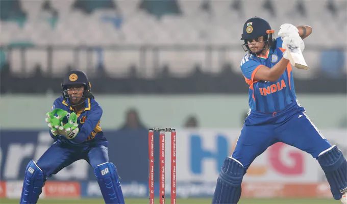 విశాఖ: శ్రీలంకతో అయిదు టీ20ల సిరీస్లో భాగంగా రెండో మ్యాచ్లో (India Women vs Srilanka Women) భారత్ 7 వికెట్ల తేడాతో ఘన విజయం సాధించింది. షెఫాలీ వర్మ (69*: 34 బంతుల్లో 11 ఫోర్లు, ఒక సిక్స్) చెలరేగడంతో 129 పరుగుల లక్ష్యాన్ని భారత్ 11.5 ఓవర్లలో 3 వికెట్లు కోల్పోయి లక్ష్యాన్ని ఛేదించింది. జెమీమా రోడ్రిగ్స్ (26), స్మృతి మంధాన (14), హర్మన్ప్రీత్ కౌర్ (10) పరుగులు చేశారు. ఈ గెలుపుతో భారత్ 2-0 తేడాతో ఆధిక్యంలో నిలిచింది.