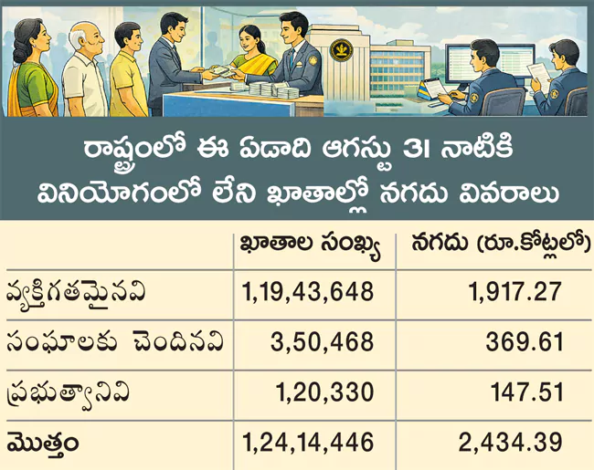 The number of non-surviving bank accounts in the state has crossed one crore. It has become a problem to identify the respective customers as the phone numbers from years ago have changed and the addresses are not clearly mentioned in the bank accounts. This is the pattern in the government departments in the districts as well.. Whenever the officer changes, new accounts are opened and the old ones are ignored. There are more than one lakh such cases in the entire state. In the government accounts left like this, there are cash balances of Rs.64 crores in SBI alone.