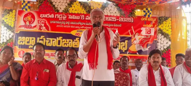 Charla: The party's Shata Vasantha Utsava Sabha campaign was launched by the party's National Control Commission Chairman K. Narayana in Charla on Saturday. He participated and addressed the meeting held on this occasion. CPI leader Dr. Narayana was warmly welcomed by party ranks with Gothti Koya dances. Narayana addressed the meeting held afterwards. He said that the party, which is moving forward with breath, has been blessed with many sacrifices. He said that it was the communists who gave land rights to the poor. In the future, people's struggles will continue to advance. Hundred years communist movements explained. CPI District Secretary Sabir Pasha, State Working Committee members Kallur Venkateswara Rao, Mutyala Viswanatham, Pullareddy, Lakshmi Kumari, Addagarla Tathaji, Mandal Secretary Nupa Potaiah and others participated in this meeting. Telugu News► Follow us on Facebook, Twitter, href="https://www.instagram.com/eenadulivenews/?hl=en" target="_blank" rel="noopener">Instagram& Google News. Tags :