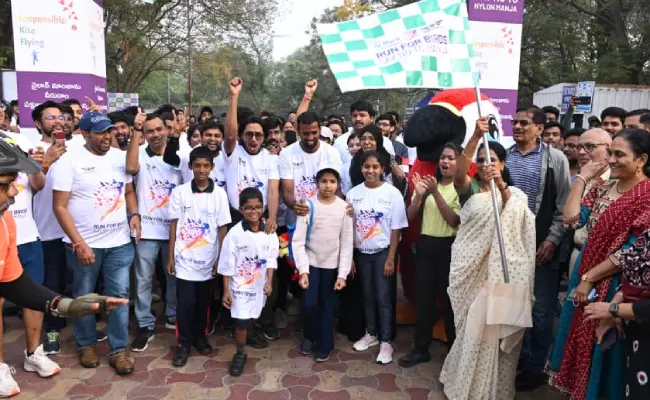 Regimental Bazar: To create awareness about the dangers caused by nylon manja, a 'Run for Birds' run was organized at Sanjeevayya Park, Secunderabad under the auspices of Animal Warriors Conservation Society (AWCS). AWCS representatives said that birds are losing their lives every year due to the use of banned nylon manja. It is said that due to manja hanging on the roads, two-wheeler drivers are also affected by accidents. It is said that nylon manja is not biodegradable, causing long-term damage to the environment. It has been revealed that more than five thousand birds have been saved since 2019. He said that through the 'Responsible Kite Flying' program, people are being made aware of environment-friendly alternatives like cotton manja by stopping the use of nylon manja. Youth and children participated in this run in large numbers.
