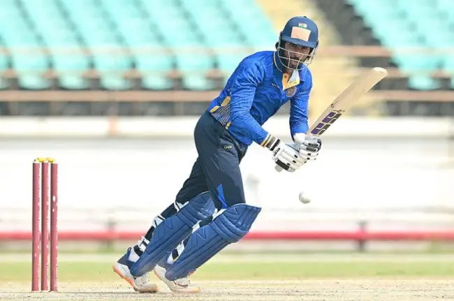 Rajkot: Hyderabad finally hit the jackpot in the Vijay Hazare Trophy. After four consecutive defeats, they won the match against Chandigarh by 136 runs on Saturday. Batting first, Hyderabad scored 286 runs for the loss of 9 wickets. Captain Tilak Verma (109; 6 fours, 3 sixes off 118 balls) impressed with a century. Abhirat Reddy (71) shone with a half-century. The rest of the batsmen failed. Chandigarh were bowled out for 150 runs in 37.4 overs. Sanyam Saini (46) was the top scorer. Manan Vohra (24) and Vishu Kashyap (27) scored runs. Among the Hyderabad bowlers, Chintala Rakshana Reddy 3, Chama Milind 2, Kannala Nitish Reddy, Mohammad Siraj, Varun Goud took 2 wickets each.
