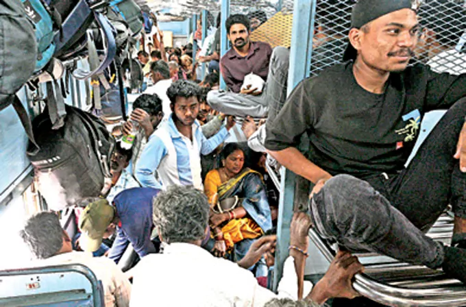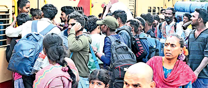 Today, Chittoor: As the festival of Sankranti is still a few days away, the employees and relatives of other states are reaching those places early for various tasks. Seshadri Express runs regularly from Bangalore via Chittoor to Vijayawada, Guntur, Kakinada etc. Railway officials say that this train has been crowded for the last three days. The bogies were crammed with passengers who had come to go to their places for Sankranti. There is only one front and one rear bogie of the General, so they are traveling in a tight space in both the bogies. Others are standing at the toilets wearing masks to bear the stench. At Chittoor station, some got down while others pushed and got on. Due to this, women suffered a lot. Finally, some of them did not have the chance to board and ran to the reservation bogies and boarded. src="https://assets.eenadu.net/article_img/Ctr-Ddkr8012627c.webp" alt="" class="img-fluid rounded">