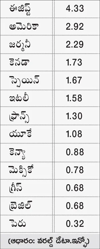 స్వదేశాల్లో తమ జీవితాలకు భద్రత లేదని భావిస్తున్న చాలామంది ఆశ్రయం కోసం విదేశాలను అభ్యర్థిస్తున్నారు. ఈజిప్ట్, అమెరికా, జర్మనీలకు అలాంటి విన్నపాలు ఎక్కువగా వస్తున్నాయి. 2024లో అసైలం కోసం ఆయా దేశాలకు ఎంతమంది దరఖాస్తు చేసుకున్నారంటే... (లక్షల్లో)