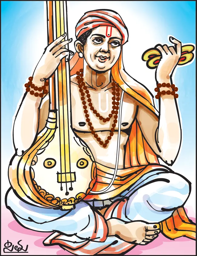 Tyagayya was born on May 4, 1767 to Seethamma and Ramabraham at Thiruvarur on the banks of Kaveri river in Thanjavur district. He considered himself fortunate that the names of his idols, Sitaram, were also the names of his parents. Tyagayya's father, who was a great devotee of Rama since childhood, used to always sit beside him and join his voice while praying. One day, while singing 'Namo Namo Raghava' in devotional ecstasy, the father was surprised and asked, 'Where did you learn such a beautiful song?' 'It came to my mouth, I sang it' said Tyagayya. On hearing that, Rama Brahma sensed that his son would become a great orator.