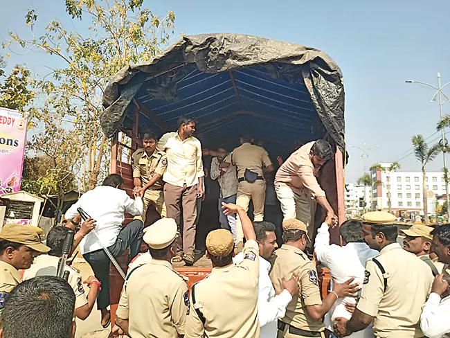 Eenadu Digital, Kamareddy; Kamareddy town, Newstoday: Challenges and counter-challenges between Congress and BJP leaders regarding the government degree college lands in Kamareddy town have led to tensions. On Friday, both parties called for a discussion on the land issue at the venue of Saraswati Shishumandir in the town. As a result, the police arrested the leaders of the respective parties from Saturday morning. The Congress ranks who came to Shishumandir were taken into custody and taken to the police stations of the district. Kamareddy MLA Venkataramana Reddy voluntarily stayed in the camp office instead of coming out as requested by the SP.