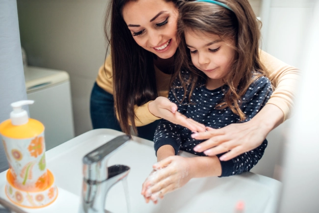 ⚛ పిల్లల చేతులు పరిశుభ్రంగా ఉంచడం వల్ల 10 మంది చిన్నారుల్లో కనీసం నలుగురు చిన్నారులను డయేరియా లాంటి వ్యాధుల నుంచి రక్షించుకోవచ్చని అధ్యయనాలు చెబుతున్నాయి.