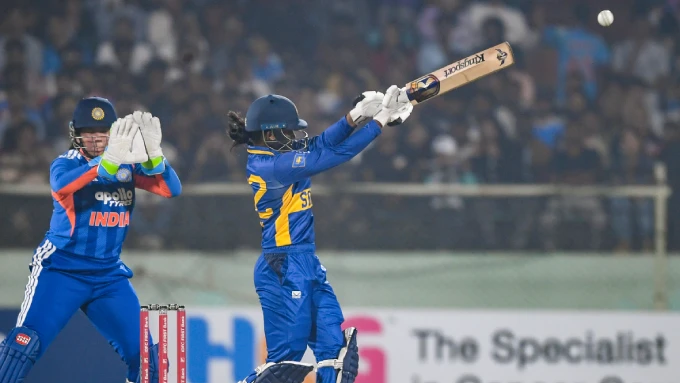 Sweaty Sri Lankan batsmen... India's target is 122 as part of the women's five T20 series, SriLanka's innings ended in the first match against India at Visakhapatnam.